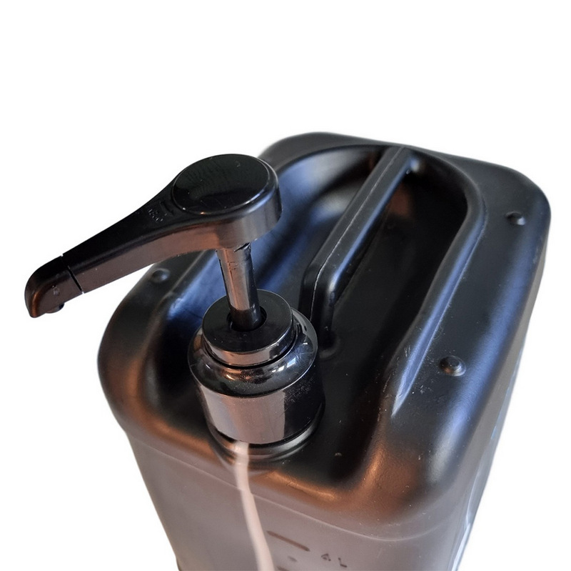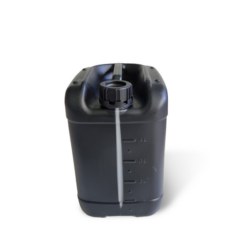 - Канистра 5 кг. Черная непрозрачная канистра с прозрачной мерной полосой. Канистра штабелируемая, для чего имеет соответствующую геометрию на верхней части где располагается ручка. Опционально с канистрой может быть поставлен дозатор для розлива геля более компактную тару;