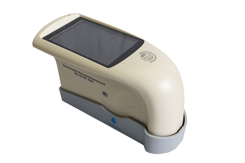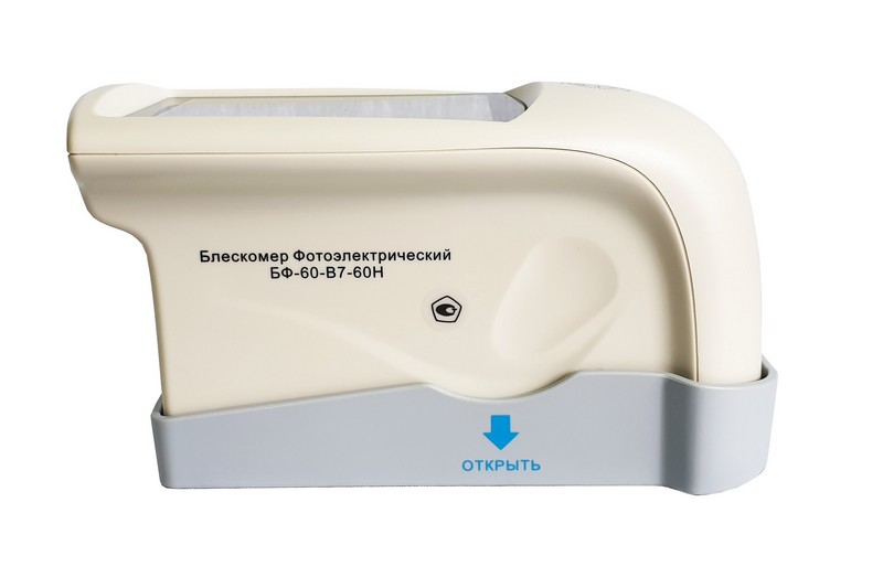 Блескомер БФ-60-В7-60Н фотоэлектрический одноугловой 60°/60° - предназначен для измерений блеска в геометрии освещения/наблюдения 60°/60°. Размер измеряемого участка не более 9x15 мм (эллипс). Встроенное программное обеспечение осуществляет калибровку показаний по установочной (настроечной) мере блеска поверхности (вмонтирована внутрь крышки защитного чехла-держателя). Встроенное ПО осуществляет хранение до 1000 результатов измерений, обеспечивает возможность передачи и работы с данными на внешнем ПК. Результаты измерений, а также заданные режимы работы выводятся на цветной жидкокристаллический дисплей 74x49 мм.