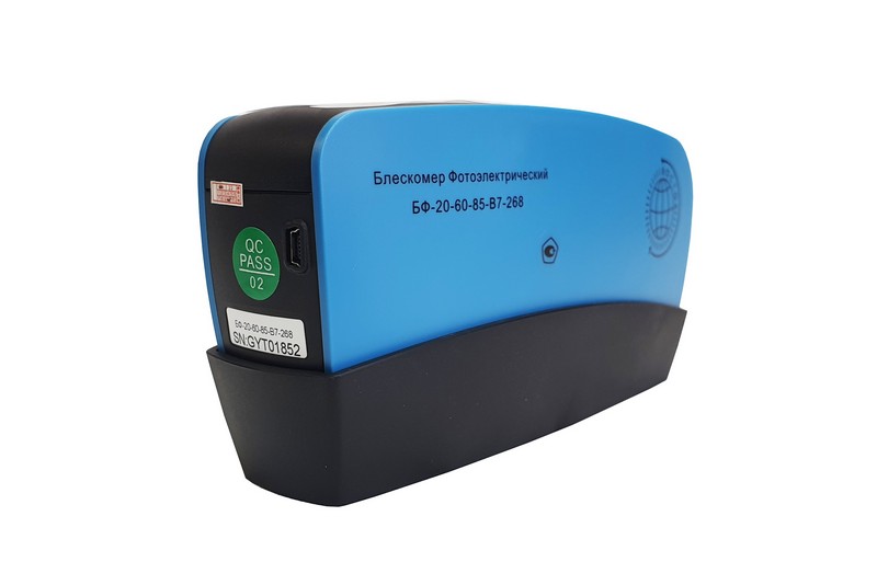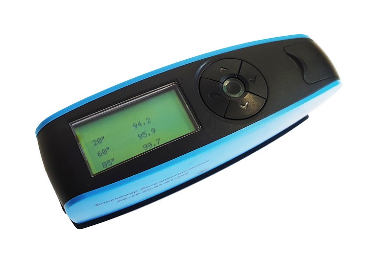 Блескомер БФ-20-60-85-В7-268 фотоэлектрический трёхугловой 20°/20°, 60°/60°, 85°/85° - предназначен для измерений блеска в геометриях освещения/наблюдения: 20°/20° - размер измеряемого участка не более 9х10 мм (эллипс); 60°/60° - размер измеряемого участка не более 9х15 мм (эллипс); 85°/85° - размер измеряемого участка не более 5х38 мм (эллипс). Встроенное программное обеспечение осуществляет калибровку показаний по установочной (настроечной) мере блеска поверхности (вмонтирована внутрь крышки защитного чехла-держателя). Встроенное ПО осуществляет хранение до 35000 результатов измерений, обеспечивает возможность передачи и работы с данными на внешнем ПК. Результаты измерений, а также заданные режимы работы выводятся на жидкокристаллический дисплей 49х24 мм.