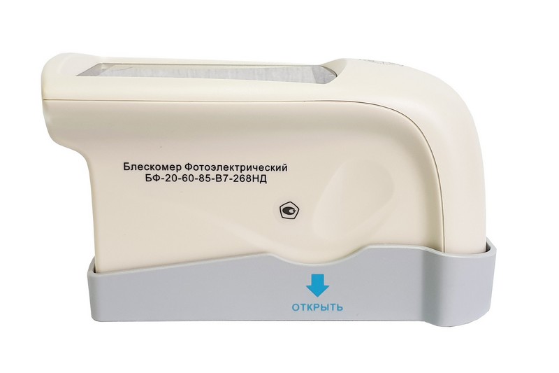Блескомер БФ-20-60-85-В7-268НД фотоэлектрический трёхугловой 20°/20°, 60°/60°, 85°/85° предназначен для измерений блеска в геометриях освещения/наблюдения 20°/20°, размер измеряемого участка не более 10х10 мм (круг); 60°/60°, размер измеряемого участка не более 9х15 мм (эллипс); 85°/85°, размер измеряемого участка не более 5х36 мм (эллипс). Встроенное программное обеспечение осуществляет калибровку показаний по установочной (настроечной) мере блеска поверхности (вмонтирована внутрь крышки защитного чехла-держателя). Встроенное ПО осуществляет хранение до 5000 результатов измерений, обеспечивает возможность передачи и работы с данными на внешнем ПК. Результаты измерений, а также заданные режимы работы выводятся на цветной сенсорный жидкокристаллический дисплей 74х49 мм.